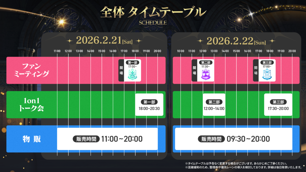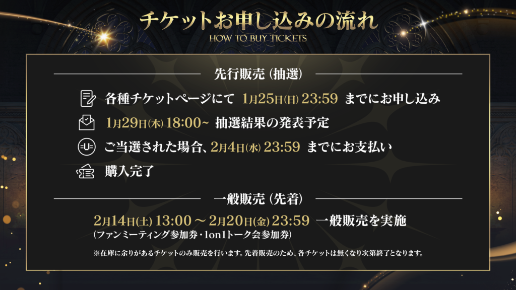 ※ファンミーティングは全3部制です。すべてに参加される場合は、各部のチケットが必要です。