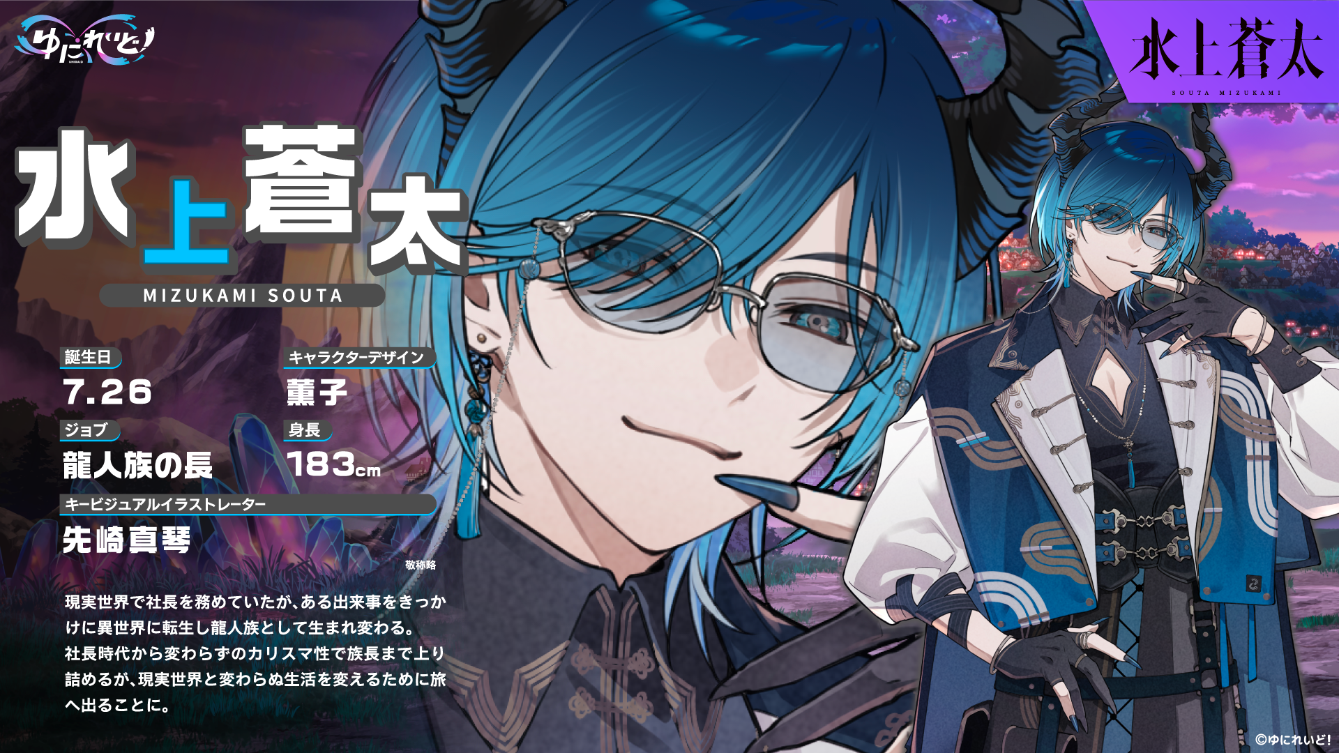 現実世界で社長を務めていたが、ある出来事をきっかけに異世界に転生し龍人族として生まれ変わる。